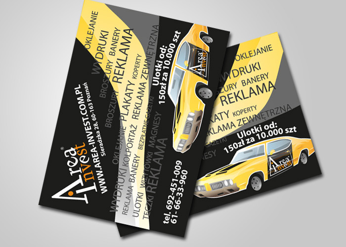 Proponujemy kompleksową usługę projektowania, wydruku oraz kolportażu ulotek lub kolportażu i wyklejania plakatów. Oferujemy najniższe ceny oraz sprawdzoną jakość. Istniejemy na rynku od 15 lat.